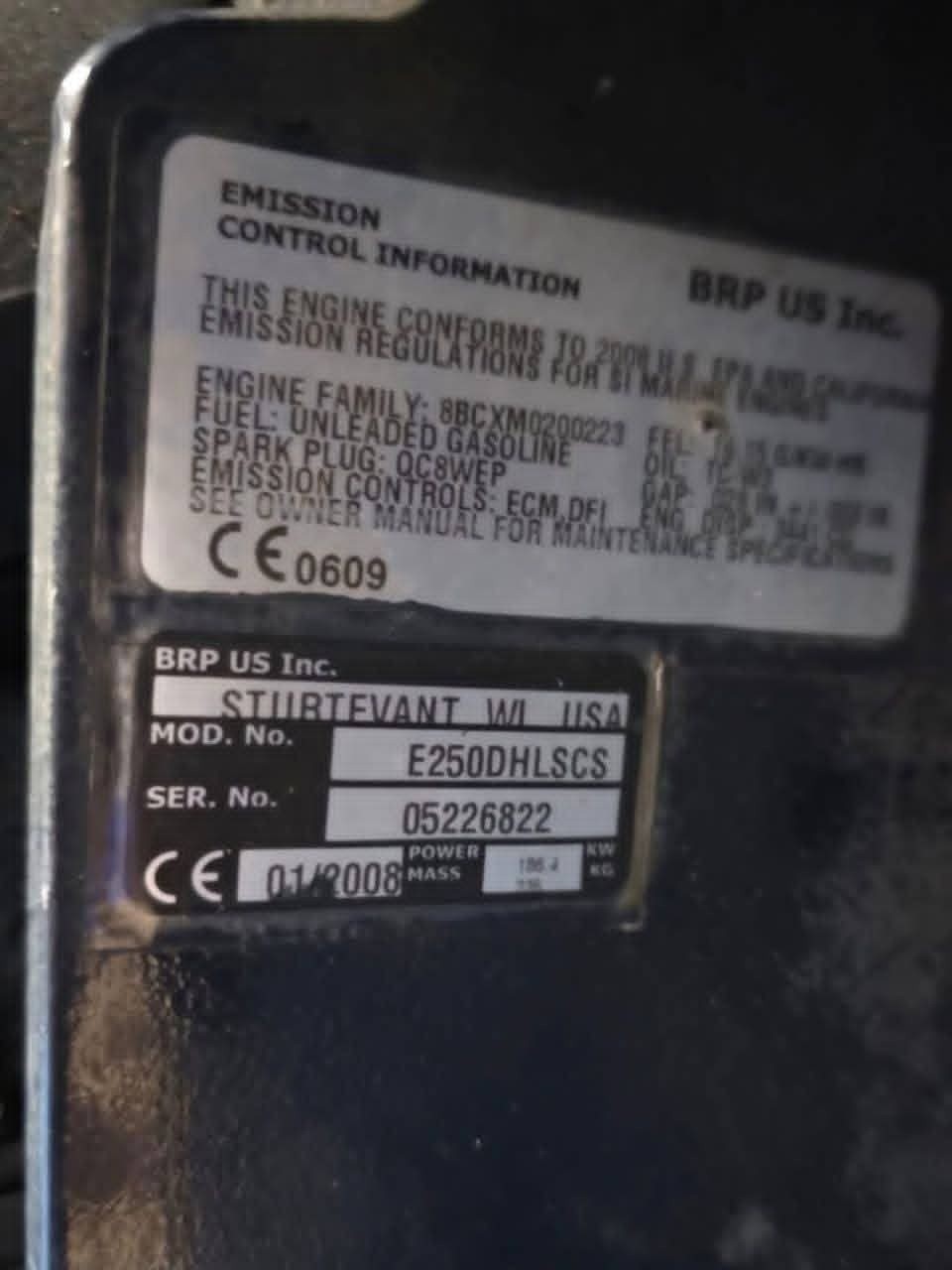 Performance-ready 2008 Evinrude 250 H.O. E-TEC with 850 hours. This is a complete kit including all wiring, forward controls, oil tank, and a stainless steel propeller. Ideal for high-performance hulls requiring the legendary E-TEC torque and agility.