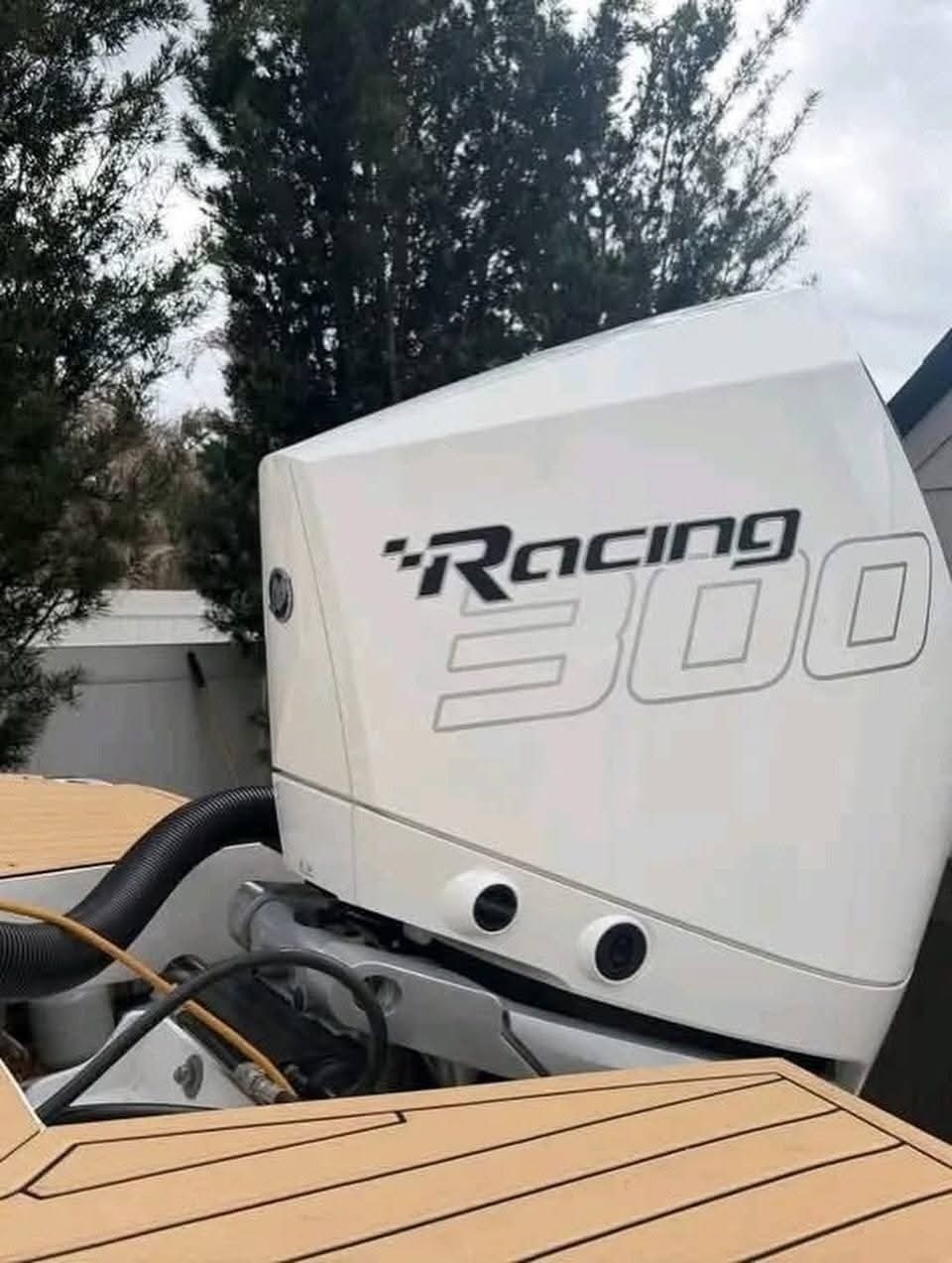 Take command of the water with the Mercury 300 Racing outboard. Built for boaters who demand extreme performance, this engine features a lightweight design paired with massive displacement to provide instant throttle response and incredible top-end speeds. Its striking white and black racing aesthetic ensures your vessel looks as fast as it performs.